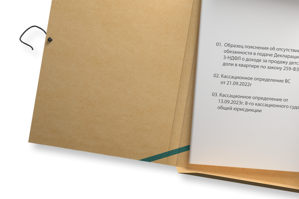 • Образец пояснения об отсутствии обязанности в подаче Декларации 3-НДФЛ о доходе за продажу детской доли в квартире по закону 259-ФЗ