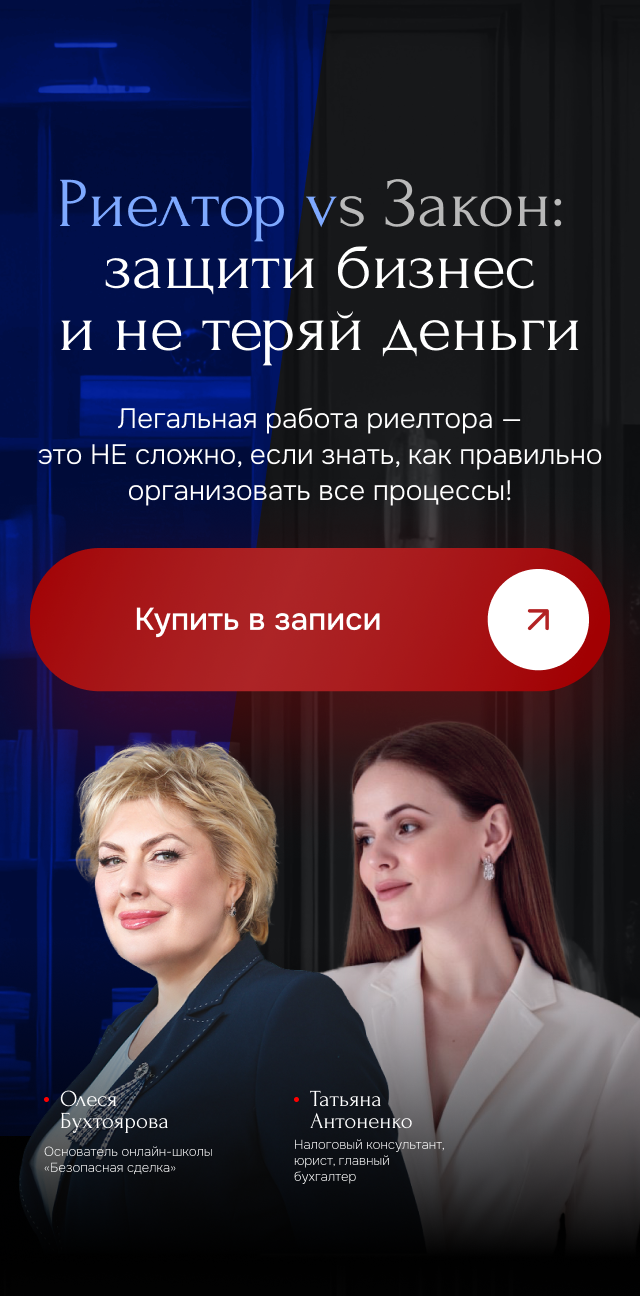 — Основатель юридической онлайн школы «Безопасная сделка», онлайн курса «Стандарты проверок объектов недвижимости»